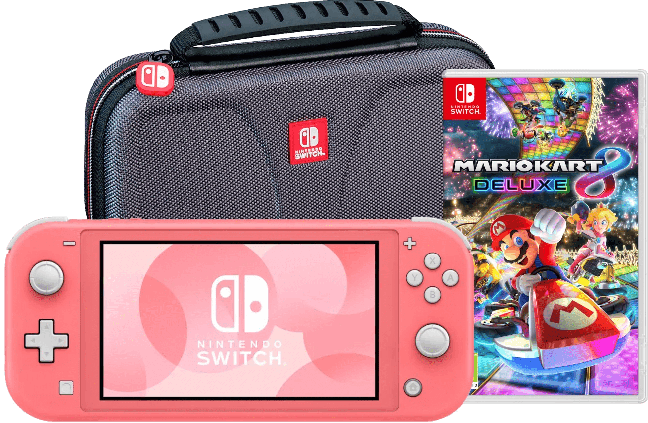 Race tegen vrienden en familie in Mario Kart 8 Deluxe met de Nintendo Switch Lite Koraal en neem hem overal mee naartoe met de Bigben Beschermtas. Spring gelijk in de game en kies je favoriete Mario personage. Ontdek verschillende oude en nieuwe circuits of prik de ballonnen van je tegenstanders lek in battle mode. Ben je even klaar met spelen? Dan berg je de Nintendo Switch makkelijk op in de beschermhoes. Zo voorkom je krassen op je scherm. De Nintendo Switch Lite is de kleinere en lichtere versie van de Nintendo Switch, waardoor je hem nog makkelijker meeneemt. De Nintendo Switch Lite heeft geen losse onderdelen, waardoor de console steviger is dan de normale Nintendo Switch en geschikt is voor de jongste gamer. Ook gaat de batterij van de Nintendo Switch Lite langer mee dan van de normale Nintendo Switch, waardoor je dus langer onderweg gamet.