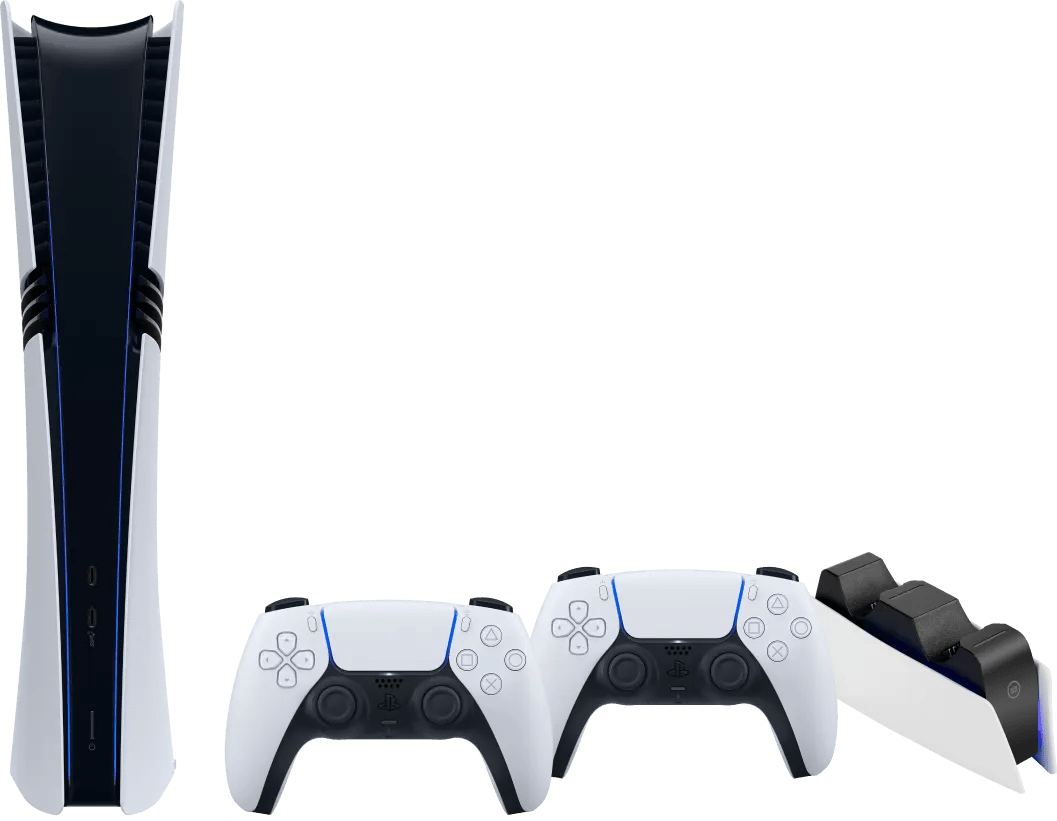 Laad je controller op en ga aan de slag met de PlayStation 5 Pro + Extra Controller Wit + Oplaadstation. Bij deze bundel krijg je een extra witte Sony DualSense controller meegeleverd. Hierdoor heb je altijd een extra controller achter de hand of speel je samen met vrienden. Ben je klaar met gamen? Dan leg je de DualSense controller in het oplaadstation. Zo speel je altijd met een volle accu tijdens je volgende game sessie. Met de PlayStation 5 Pro Digital Edition haal jij het meeste uit je favoriete games. De PS5 Pro Digital Edition heeft geen cd lade. Hierdoor speel je geen games op disc of blu-ray films af. Wil je dit wel? Dan installeer je gemakkelijk de los verkrijgbare Disc Drive op je PS5 Pro. Deze PlayStation 5 Pro heeft 2 terabyte opslagruimte. Hierdoor heb je genoeg ruimte voor je favoriete games en verwijder je minder bestanden of apps. Door de nieuwe PlayStation Spectral Super Resolution game je met de scherpste beelden op je 4K televisie dankzij AI technologie. Ook speel je met de vloeiendste gameplay door de 120 hertz ondersteuning en geavanceerde raytracing. Dit maakt jouw games nog mooier, met gedetailleerde reflecties, schaduwen en de beste in-game verlichting. Speel je graag oude PS4 games? Met de speciale Game Boost functie speel je oude games in hogere kwaliteit. Door de snelle SSD kaart van deze PS5 Pro geniet je van de snelste laadtijden. Dit maakt jouw game ervaring prettiger. Speel je veel RPG of shooter games? Je hoort precies waar tegenstanders vandaan komen dankzij 3D audio. In-game bestuur jij jouw personages met de DualSense controller. Deze heeft voelbare feedback en trigger effecten, waardoor je niet alleen ziet en hoort, maar ook voelt wat er in je game gebeurt.
