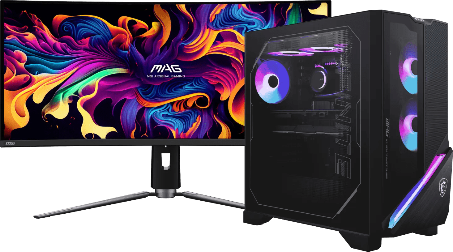 Met de MSI MPG Infinite X3 AI 2NVZ9-231EU + MSI MAG 341CQP QD-OLED gaming pc en gaming monitor bundel game je als een pro. Met de NVIDIA GeForce RTX 5090 videokaart speel je elke game soepel en op de hoogste instellingen, zelfs met zware grafische mods. Door de Intel Core Ultra 9 Series 2 processor en 64 gigabyte DDR5 werkgeheugen is de pc ook krachtig genoeg voor quad hd streaming, 3D bewerking en game design. De NPU en AI functies van de processor stellen de framerate en resolutie automatisch op elkaar af voor een vloeiende game ervaring. Met de MSI Silent Storm Cooling AI technologie en de waterkoeling blijven je onderdelen koel, zelfs tijdens lange speelsessies. De 34 inch quad hd OLED monitor met 175 hertz verversingssnelheid en 0,03 ms reactietijd zorgt voor snelle en scherpe beelden. Op het curved ultrawide scherm zie je nog meer van het speelveld en ga je helemaal op in je game. Met DisplayHDR 400 ondersteuning en de kleurdiepte van 1 miljard kleuren springen de beelden van je scherm.