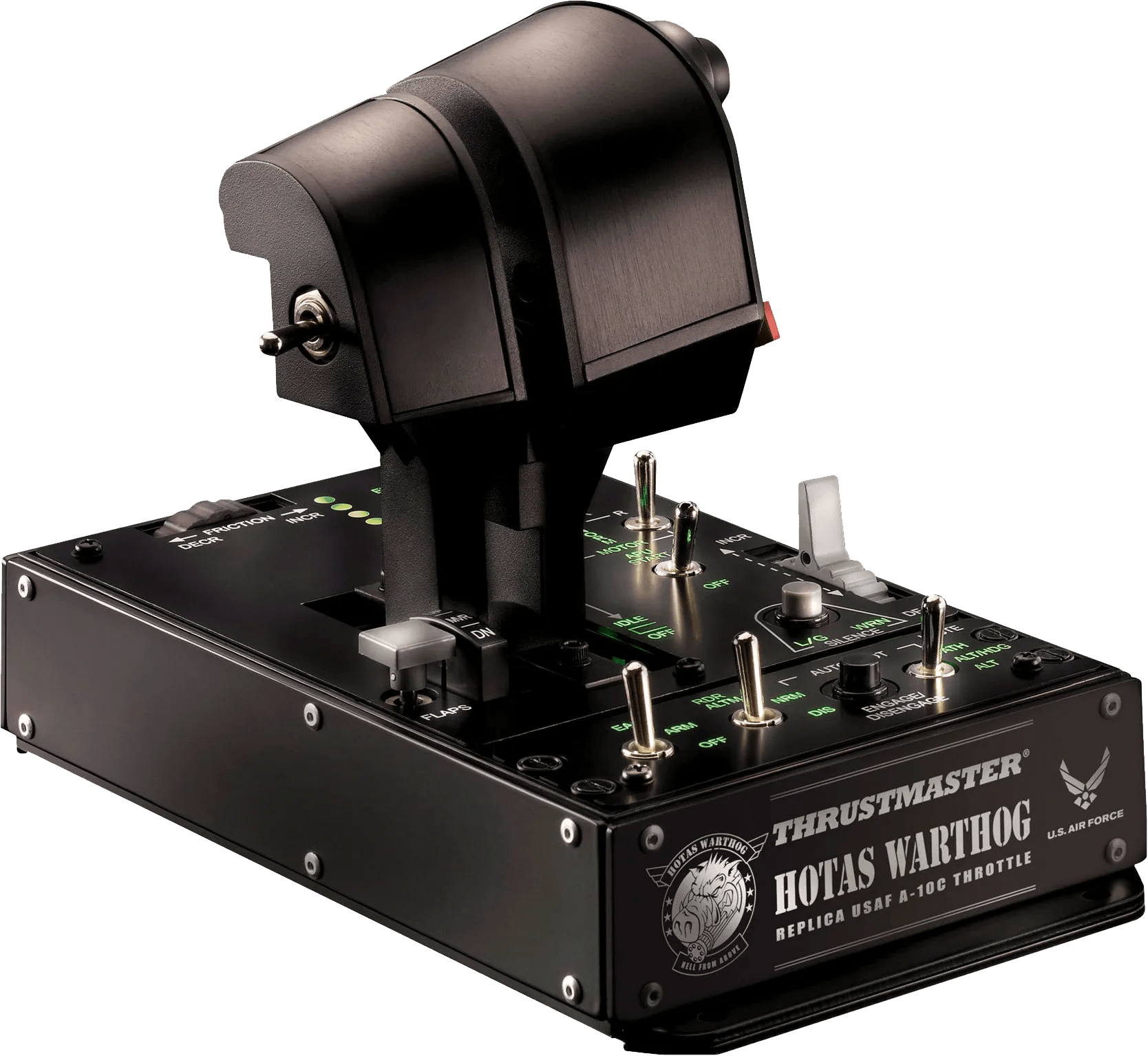 Combineer deze Thrustmaster Hotas Warthog Dual Throttles met een flightstick en neem de controle over je digitale vliegtuig. Met deze dubbele gashendel bepaal je precies hoe hard jouw vliegtuig gaat en zo maak je de perfecte landing. Door de 3D magnetische sensoren (hall effect) van de gashendels worden de kleinste aanpassingen geregistreerd. Ook beschikt de dubbele gashendel over 17 actieknoppen, waar je belangrijke in-game functies aan koppelt. Zo klap je het landingsgestel uit of schakel je de automatische piloot in. Zo ben je altijd de koning van het digitale luchtruim.