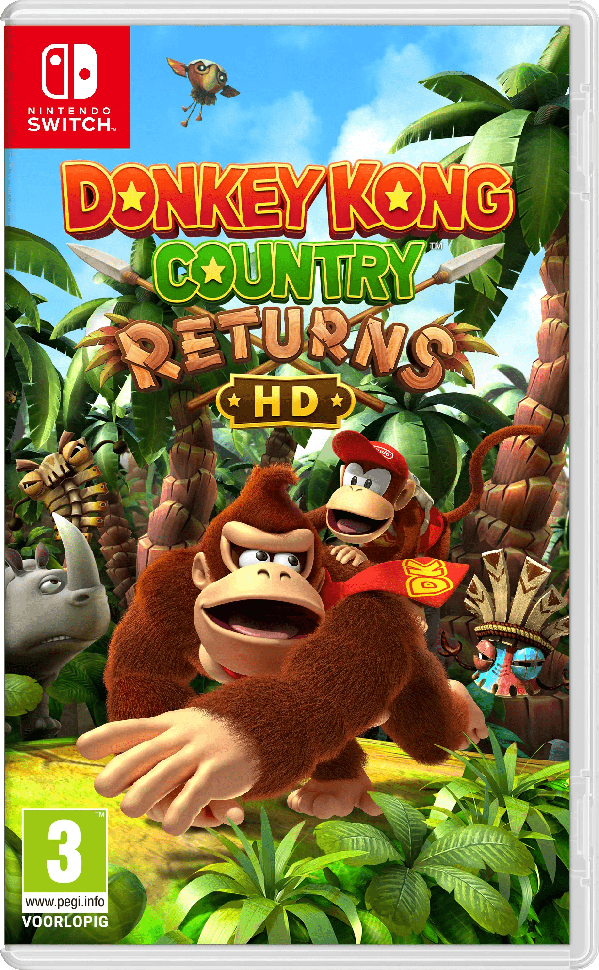 Reis door de jungle en andere gebieden in Donkey Kong Country Returns HD voor de Nintendo Switch. Deze game kwam eerder uit voor de Nintendo Wii en de 3DS en komt nu voor het eerst uit voor de Nintendo Switch. De Tiki-Tak stam heeft de bananen van Donkey en Diddy Kong gestolen en die willen ze natuurlijk terugkrijgen. Speel als Donkey en Diddy Kong en ren en klim door alle levels van de eerdere versies. Zo speel je voor het eerst de exclusieve levels van de Nintendo 3DS versie op een groot scherm. Spring in een mijnkar of op de rug van Rambi de neushoorn en race door verschillende levels. Speel je liever samen? Geef een Joy-Con aan je vriend of vriendin en speel samen het verhaal van deze vrolijke platformer.