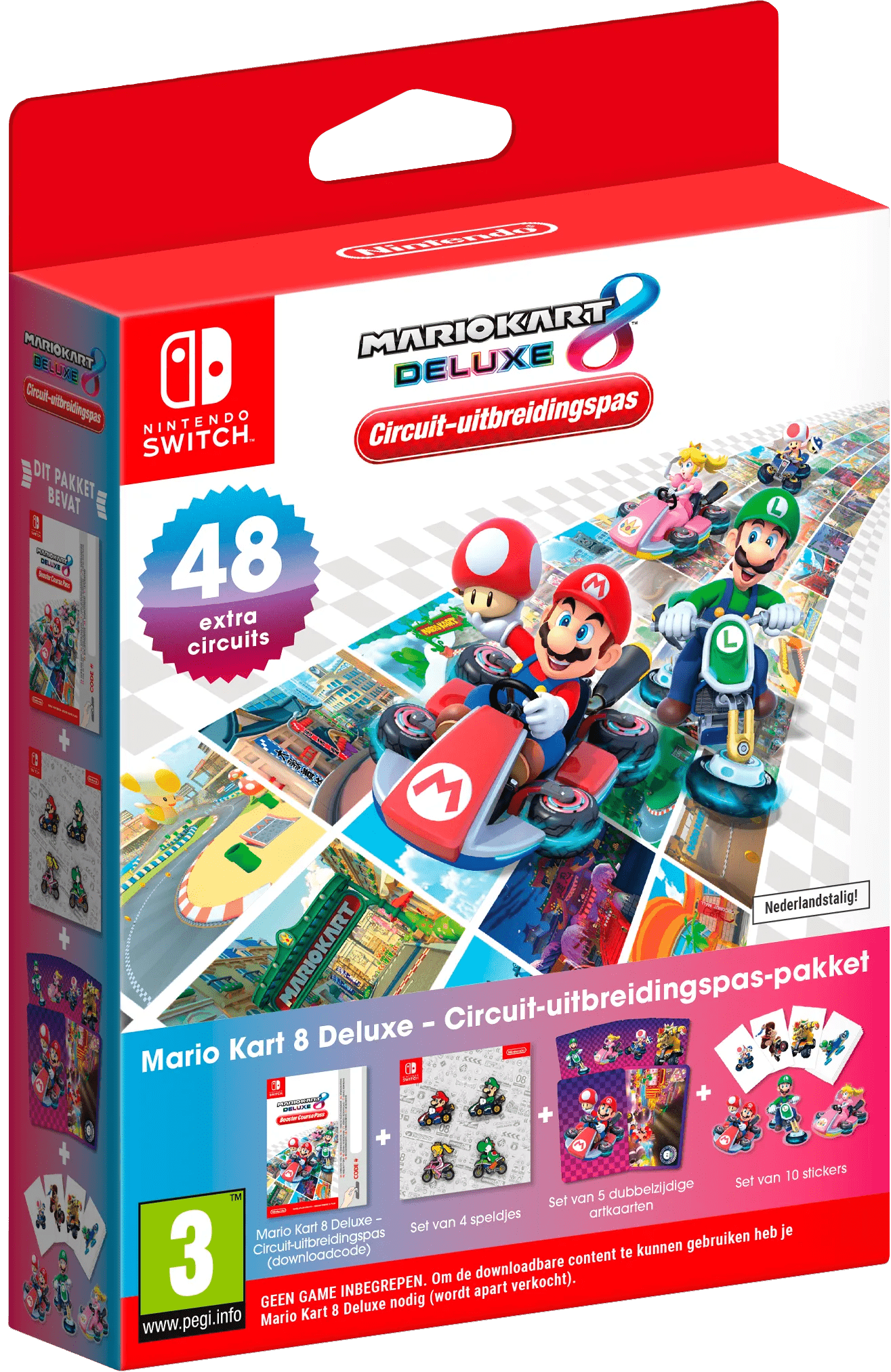 Race als nieuwe personages op nieuwe en klassieke racebanen met de Mario Kart 8 Deluxe Booster Course Pass voor de Nintendo Switch. Dit uitbreidingspakket voegt 48 nieuwe circuits en 8 nieuwe racers toe aan Mario Kart 8 Deluxe. Speel als Diddy Kong of Wiggler door Amsterdam Drift of Coconut Mall uit eerdere Mario Kart games. Voor dit uitbreidingspakket zijn er ook compleet nieuwe circuits gemaakt zoals Squeaky Clean Spint en Sky High Sundae. Bovendien krijg je bij dit uitbreidingspakket een aantal leuke extra’s, zoals stickers, speldjes en speciale kaarten.