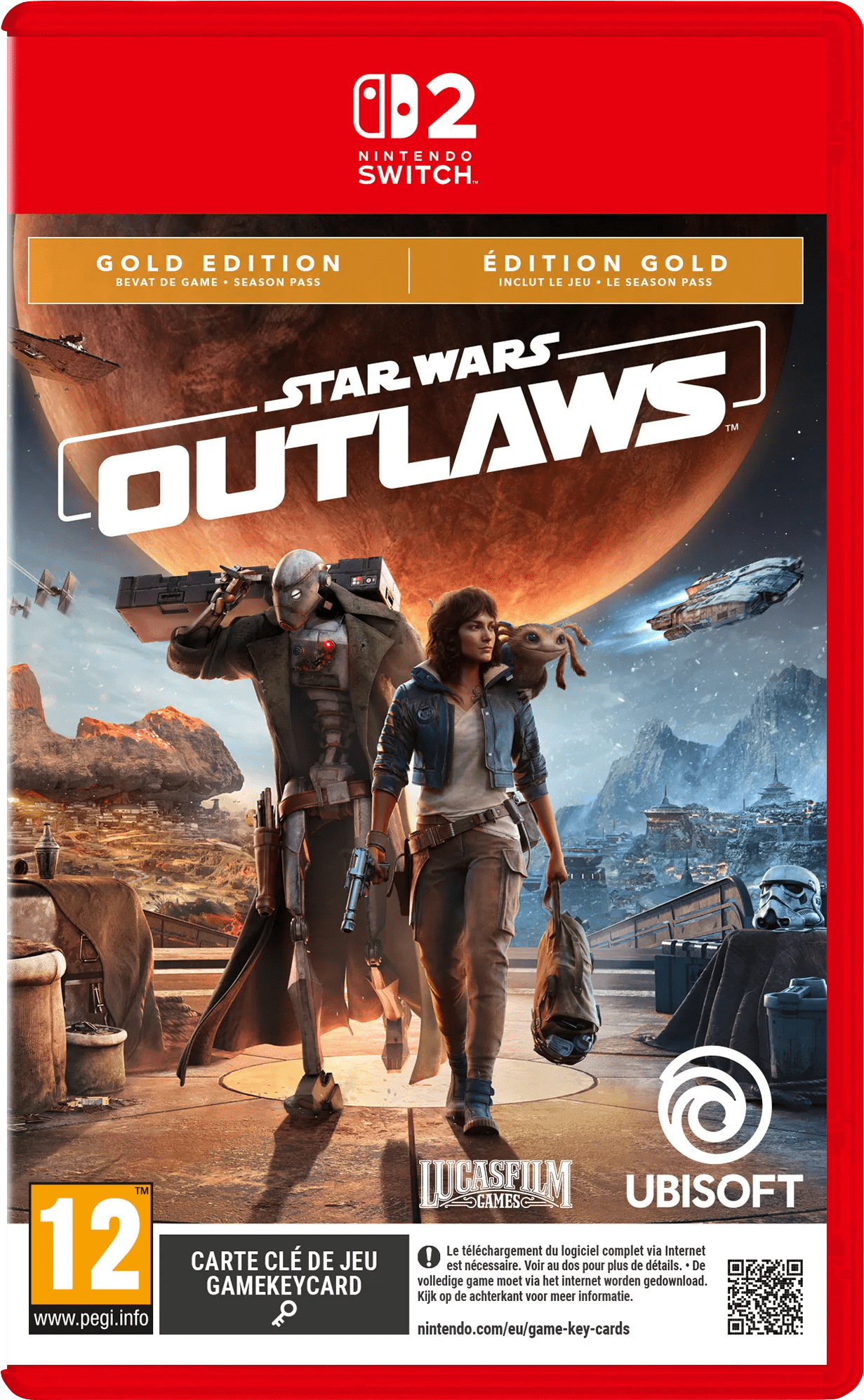 Verken de ruimte en verschillende planeten van Star Wars met Star Wars Outlaws voor Nintendo Switch 2. In deze open wereld game speel je als Kay Vess, een schurk die op zoek is naar haar vrijheid. Samen met haar partner Nix verkennen zij verschillende planeten met haar speeder en schip Trailblazer. Voltooi missies, steel belangrijke goederen en ga geheimen gebouwen binnen. Alleen zo ben je jouw vijanden te snel af. Je speelt deze game met maximaal 1 speler.