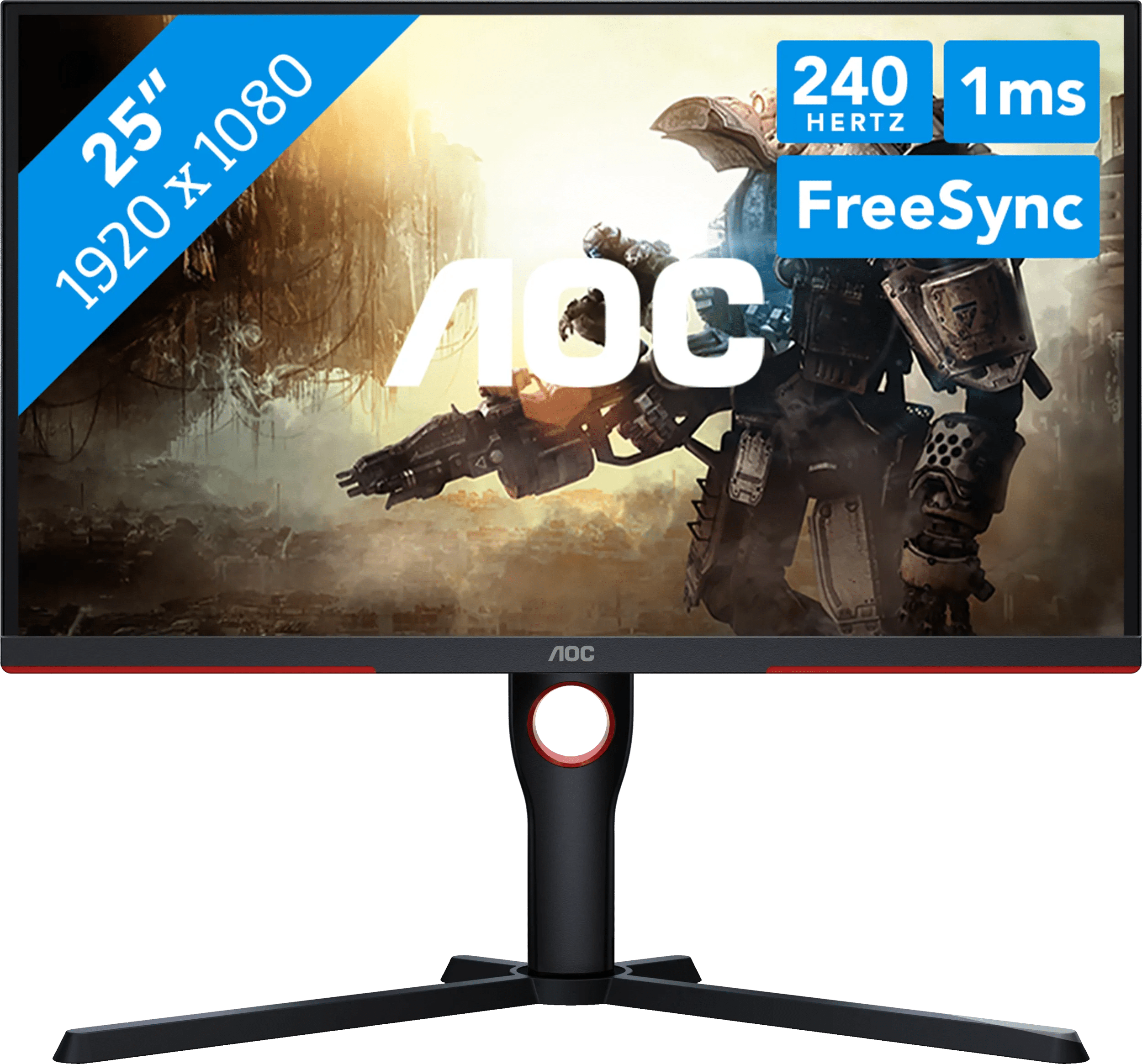 Met de AOC 25G3ZM/BK speel je vloeiende games met scherpe beelden. Deze monitor heeft een full hd resolutie, wat geschikt is voor standaard en competitieve games. Je ziet geen kleine details, maar landschappen en graphics komen scherp in beeld. De verversingssnelheid van 240 hertz en de reactietijd van 1 milliseconde zorgen samen voor vloeiende en snelle beelden. Dit is handig bij online games, omdat je tegenstanders sneller ziet. Let op dat je een DisplayPort kabel gebruikt om 240 hertz te halen. Dankzij FreeSync loopt de verversingssnelheid van de monitor synchroon met de fps van je videokaart. Dit voorkomt tearing en haperingen tijdens het gamen. AMD videokaarten ondersteunen FreeSync standaard, en sommige NVIDIA kaarten werken ook met FreeSync via G-Sync Compatible. Hierdoor speel je zonder beeldproblemen.