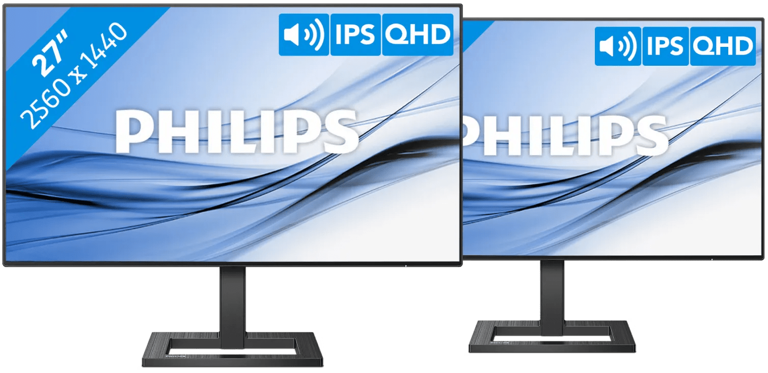 Vergroot je schermruimte door 2 schermen naast elkaar, met de Philips 275E2FAE/00 dual set-up. Dit product bevat 2 Philips 275E2FAE/00 schermen, die je naast elkaar zet op je bureau. Hierdoor heb je 2 27 inch QHD schermen naast elkaar, wat je schermruimte verdubbelt. Zo open je meer schermen naast elkaar, vergroot je het overzicht en werk je praktisch gezien met hetzelfde formaat als een super ultrawide monitor. Deze monitoren stel je gemakkelijk ergonomisch in, waarmee je nek- en rugklachten voorkomt. Kantel of verstel de monitor in hoogte en werk zo comfortabel aan je dagelijkse werkzaamheden. Door het IPS paneel werk je met scherpe beelden vanuit iedere kijkhoek, ook wanneer je niet direct voor de monitoren zit. Daarnaast geniet je van een hoge kwaliteit tijdens het kijken van een film na je werktijd. Naast het scherpe en grote beeld geniet je met deze monitoren ook van een laag energieverbruik. Zet de Economische modus aan voor alledaagse kantoortoepassingen en een laag energieverbruik. Werk je veel met de monitor? Dan voorkomen het blauw licht filter en trillingsvrije technologie dat je vermoeide ogen krijgt tijdens een lange werkdag.
