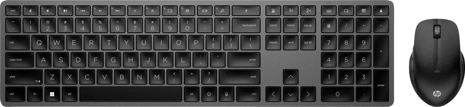 Met de HP 975 Dual-Mode Draadloos Toetsenbord Zwart + HP 430 Multi-Device Draadloze Muis werk je productief op meerdere apparaten tegelijkertijd. Je verbindt het toetsenbord met 3 verschillende apparaten: maximaal 2 via bluetooth en één via de meegeleverde usb A ontvanger. De muis sluit je aan op 2 apparaten via bluetooth of de usb A ontvanger. Het toetsenbord heeft ook 20 toetsen die je zelf programmeert. Zo stel je hem helemaal naar wens in. Ook de achtergrondverlichting is instelbaar, waardoor je op ieder moment van de dag de juiste toetsen indrukt. Tijdens het werken sleep je jouw bestanden gemakkelijk van het ene naar het andere apparaat met de muis. Dit werkt ook tussen Windows en macOS apparaten.