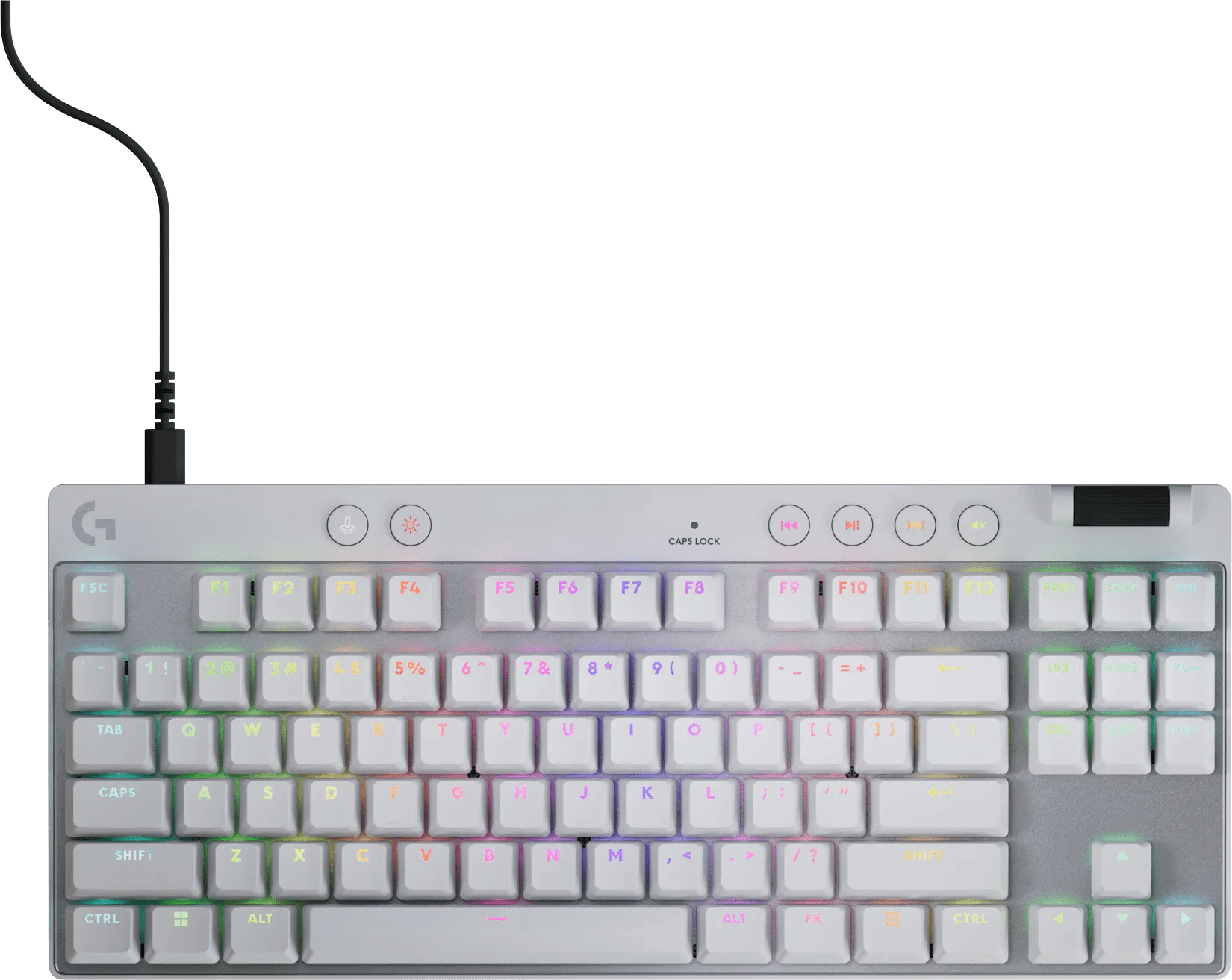 Reageer altijd nauwkeurig met het Logitech G Pro X TKL Rapid Gaming Toetsenbord Wit. Dit bedrade toetsenbord heeft magnetisch-analoge switches die voelen als lineaire toetsen. Hierdoor hoor en voel je geen feedback als je een toets indrukt. Met de Rapid Trigger modus gebruik je jouw ingedrukte toets opnieuw, waardoor je snel reageert in FPS games. Een TKL gaming toetsenbord is een toetsenbord zonder numeriek blok. Hierdoor neem je hem makkelijk mee naar een LAN party. Je sluit dit gaming toetsenbord aan met de usb A kabel. Hierdoor is het toetsenbord plug and play, waardoor je hem gelijk gebruikt. Stel zelf de RGB verlichting in via de Logitech G Hub en kies tussen 16,8 miljoen kleuren. Zo past jouw gaming toetsenbord bij de rest van je setup.