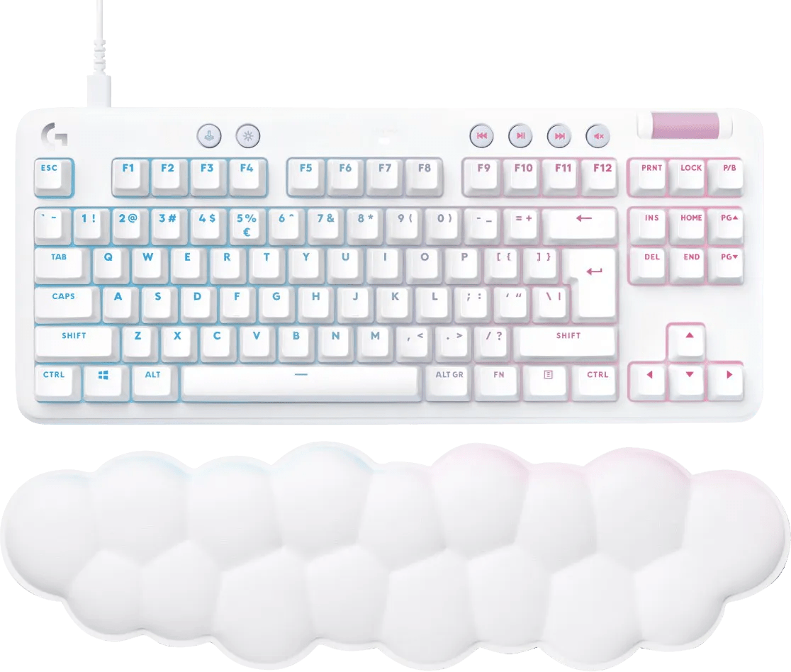 Met deze Logitech G713 Tactile Gaming toetsenbord Wit Qwerty ben je sneller dan je tegenstander. Dit bedrade toetsenbord heeft bruine mechanische toetsen. Je voelt feedback wanneer je een toets indrukt, maar hoor je deze niet. Game makkelijk uren door met de meegeleverde palmsteun met uniek design. Een TKL gaming toetsenbord is een toetsenbord zonder numeriek blok. Hierdoor neem je hem makkelijk mee naar een LAN party. Je sluit dit gaming toetsenbord aan met de usb A kabel. Hierdoor is het toetsenbord plug and play, waardoor je hem gelijk gebruikt. Stel zelf de RGB in via de Logitech G Hub en kies tussen 16,8 miljoen kleuren. Zo past jouw gaming toetsenbord bij de rest van je setup.