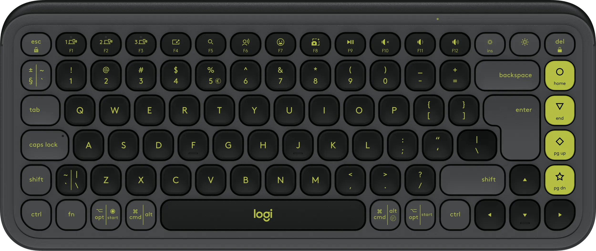 Typ comfortabel al je documenten weg met de Logitech Pop Icon Keys. Door de opvallende kleurencombinatie van grafiet en groen, geef je zo een persoonlijke draai aan je werkomgeving. Dit toetsenbord heeft membraan toetsen, die fijn aanvoelen tijdens het typen. Het draadloze toetsenbord verbind je gemakkelijk via Bluetooth, met tot maximaal 3 verschillende apparaten tegelijk. Zo typ je ook gemakkelijk op je smart tv of een andere pc, zonder dat je het toetsenbord opnieuw moet verbinden. Met één druk op de Easy Switch knop wissel je tussen apparaten. De Pop Icon Keys werkt met Windows, macOS en ChromeOS. Daarnaast neem je het toetsenbord gemakkelijk mee door het compacte formaat, bijvoorbeeld wanneer je op vakantie gaat of geen vaste werkplek hebt. Zo neemt hij ook weinig ruimte in op je bureau.