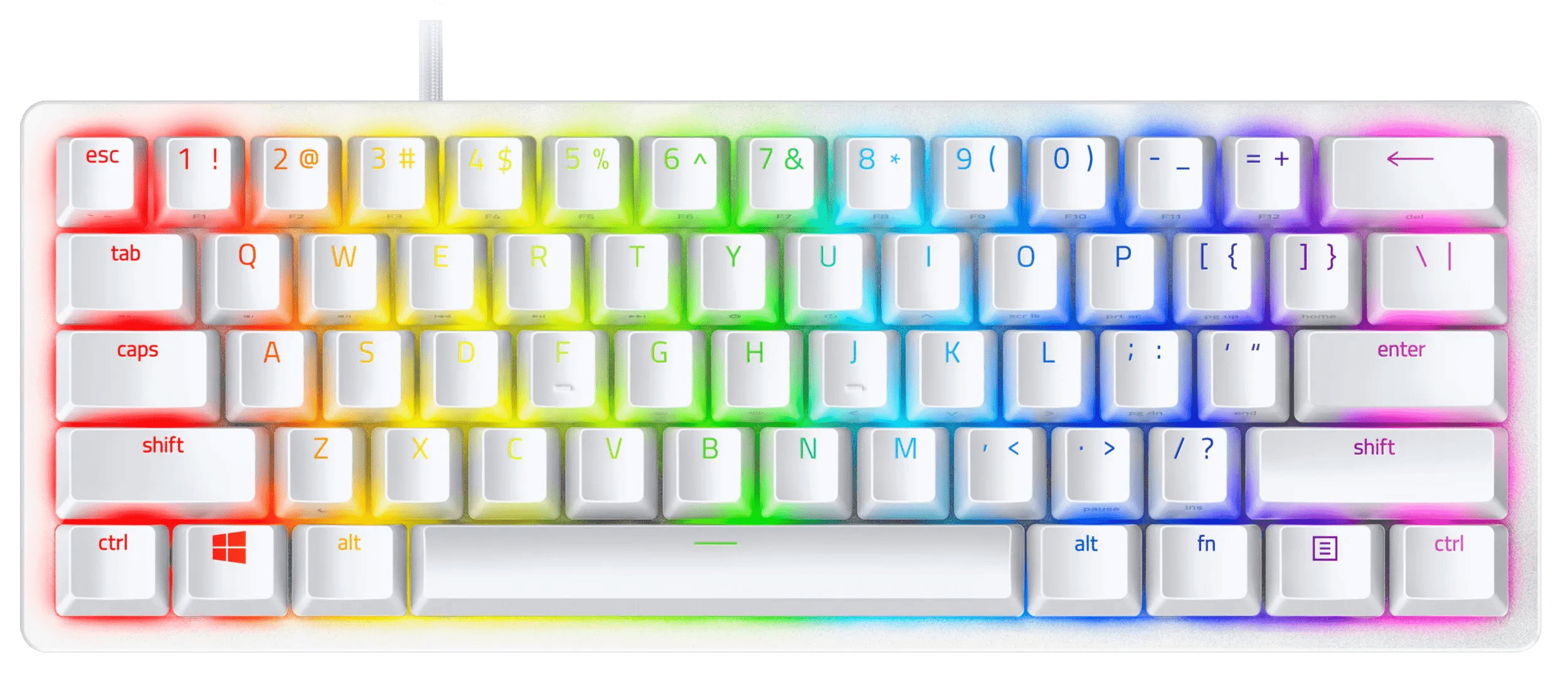 Reageer als eerste tijdens een potje Fortnite met de Razer Huntsman Mini op je bureau. Dit bedrade gaming toetsenbord heeft optische toetsen die lineair aanvoelen. Hierdoor voel en hoor je geen feedback wanneer je een toets indrukt. Stel tot 5 verschillende profielen in, waardoor je voor elke game de juiste toetscombinaties gebruikt. Dit is een 60 procent gaming toetsenbord, waardoor je hem makkelijk meeneemt naar een LAN party. Je sluit dit gaming toetsenbord aan met de usb C naar usb A kabel. Hierdoor is het toetsenbord plug and play, waardoor je hem gelijk gebruikt. Stel zelf de RGB verlichting in via de Razer Synapse software en kies tussen 16,8 miljoen kleuren. Zo past jouw gaming toetsenbord bij de rest van je setup.