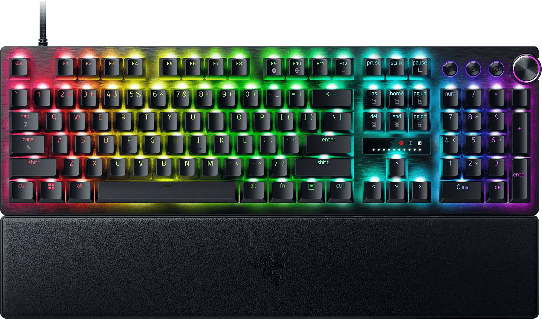 Speel je games altijd met nauwkeurige toetsaanslagen met het Razer Huntsman V3 Pro Gaming Toetsenbord. Dit bedrade gaming toetsenbord heeft Razer Gen-2 optische toetsen, wat ervoor zorgt dat je comfortabel en nauwkeurig gamet. Met een instelbaar actuatiepunt tussen de 0,1 en 4 millimeter stel jij zelf in wanneer jouw toets registreert. Bedien je volume via de dedicated media knoppen op je gaming toetsenbord en wissel snel naar je favoriete nummer op Spotify. Dit is een volledig gaming toetsenbord met een numeriek blok. Hierdoor gebruik je jouw gaming toetsenbord ook voor andere dingen dan gaming. Je sluit dit gaming toetsenbord aan met de usb C naar usb A kabel. Hierdoor is het toetsenbord plug and play, waardoor je hem gelijk gebruikt. Stel zelf de RGB verlichting in per toets via de Razer Synapse software en kies tussen 16,8 miljoen kleuren. Zo past jouw gaming toetsenbord bij de rest van je setup.