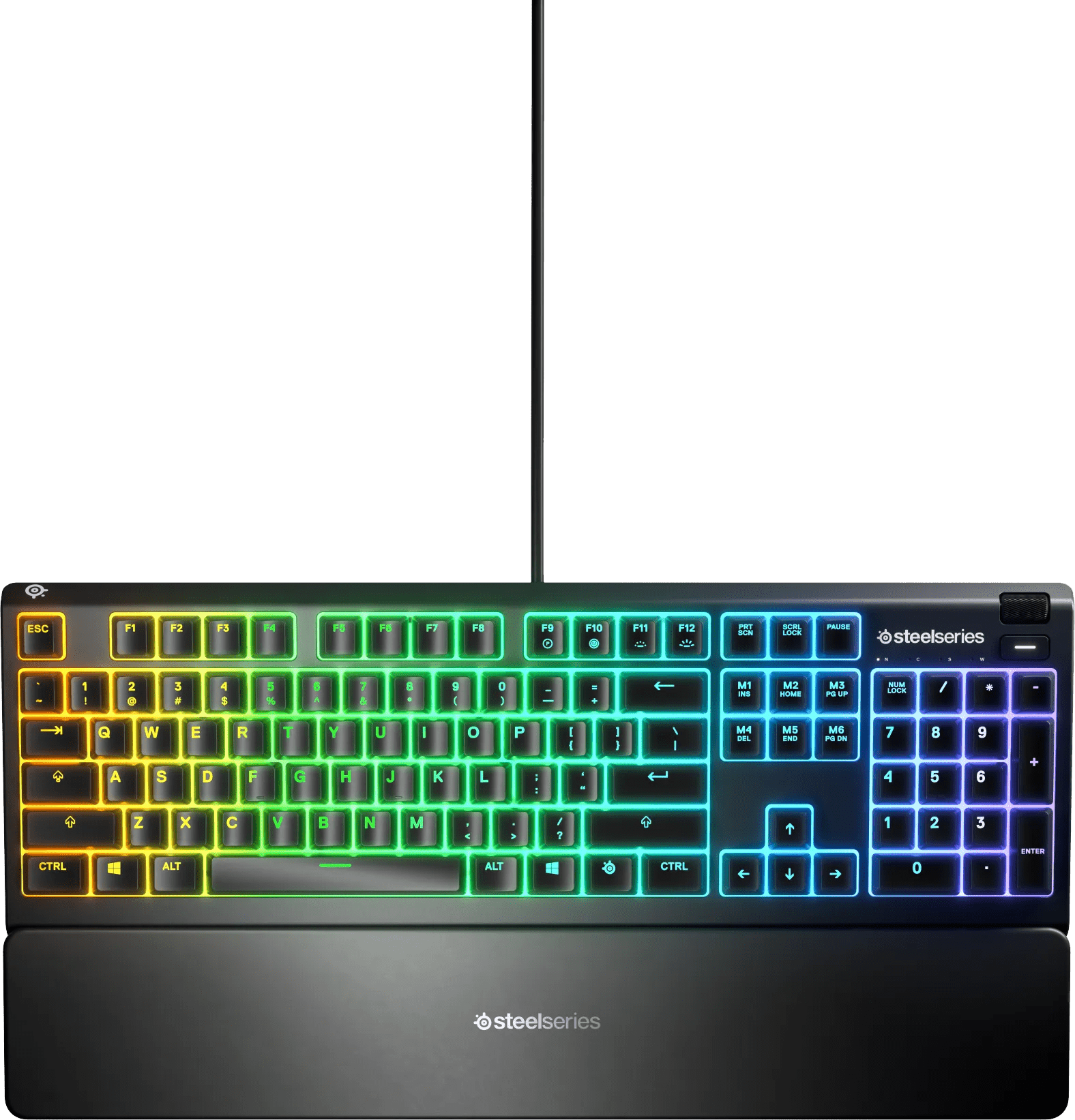Met het SteelSeries Apex 3 RGB Gaming Toetsenbord registreren je toetsaanslagen snel, waardoor je de concurrentie te snel af bent. Dit bedrade gaming toetsenbord heeft membraan toetsen. Hierdoor game je in alle stilte door de rubberen onderlaag. Luister je een muziekje en wil je even snel het volume aanpassen? Gebruik dan de multimedia toetsen op het toetsenbord. Dit is een volledig gaming toetsenbord met een numeriek blok. Hierdoor gebruik je jouw gaming toetsenbord ook voor andere dingen dan gaming. Je sluit dit gaming toetsenbord aan met de usb A kabel. Hierdoor is het toetsenbord plug and play, waardoor je hem gelijk gebruikt. Stel zelf de RGB verlichting in via de SteelSeries Engine software en kies tussen 16,8 miljoen kleuren. Zo past jouw gaming toetsenbord bij de rest van je setup.